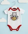 Body bebê com estampa divertida de rock, ideal para vestir com conforto e estilo. Tecido macio, 100% algodao, suave na pele sensível, respirável e mantém o bebê seco. Fechamento por botão na região inferior para troca rápida, prática e segura. Detalhe em acabamento vermelho que valoriza o visual. Perfeito para momentos de brincadeira, sono e passeios com qualidade e durabilidade.