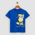 Camiseta infantil de cor azul com estampa gráfica de skatista. Tecido macio e leve, ideal para o dia a dia das crianças, proporcionando conforto o tempo todo. Estampa divertida em alto contraste que combina com bermudas ou jeans, perfeita para passeios, atividades escolares e finais de semana. Disponível em várias tamanhos para acompanhar o crescimento do seu pequeno.