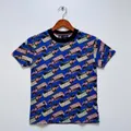 Camiseta casual com estampa colorida repetida, perfeita para o dia a dia, escola e lazer. Tecido macio oferece conforto o dia inteiro, enquanto a modelagem de caimento reto favorece qualquer silhueta. A estampa vibrante mantém o brilho após várias lavagens, e as costuras são reforçadas para maior durabilidade. Combine com jeans ou bermuda para um look moderno e despojado.