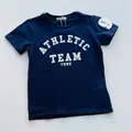 Camiseta unissex de manga curta na cor azul marinho, com estampa Athletic Team. Tecido macio e leve, proporciona conforto ao longo do dia. Gola redonda e costuras reforçadas garantem durabilidade e bom caimento. Perfeita para treino, passeio ou uso diário, combinando com jeans, shorts ou bermuda esportiva.
