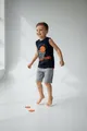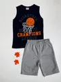Conjunto infantil composto por regata sem mangas em algodão macio e bermuda cinza leve. Tecido com toque suave, costuras reforçadas e cós elástico para ajuste rápido e conforto o dia inteiro. Estampa de basquete na regata confere estilo esportivo moderno, ideal para brincadeiras, treinos e passeios. Perfeito para crianças ativas, oferecendo mobilidade, praticidade e muito estilo.