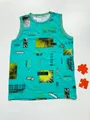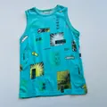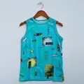 Regata infantil em algodão macio, leve e respirável, perfeita para o verão. Sem mangas, com costuras reforçadas que acompanham o movimento das crianças o dia inteiro. Estampa gráfica em tom turquesa com detalhes modernos, trazendo estilo sem esforço para várias combinações com bermudas ou shorts. Fácil de lavar, seca rápido e mantém as cores vivas após várias lavagens. Ideal para brincadeiras, passeio e escola.