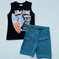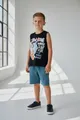Conjunto infantil regata + bermuda, ideal para dias quentes e brincadeiras ao ar livre. Tecido macio e respirável oferece conforto o dia todo, com cós elástico para ajuste seguro. Regata preta com estampa divertida e bermuda azul com bolsos discretos, criando look moderno sem complicação. Pronto para praia, parque ou passeio em família. Perfeito para crianças ativas e cheias de energia.