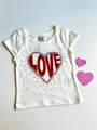Camiseta infantil de algodão macio, perfeita para o dia a dia das pequenas. Estampa charmosa com coração e a palavra LOVE em vermelho, conferindo estilo e doçura ao look. Tecido leve e confortável, lavagem fácil e modelagem regular que não aperta. Ideal para combinar com shorts, saias ou leggings em diversas ocasiões — escola, passeio ou brincadeira.