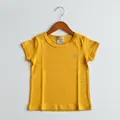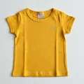 Camiseta infantil amarela com tecido de algodão macio, toque suave e caimento moderno. Possui acabamento resistente nas costuras para aguentar as brincadeiras do dia a dia.