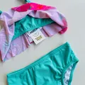 Conjunto de banho infantil com top de alças ajustáveis e calcinha de cintura média, em estampa marinha com sereias e conchas em tons rosa e turquesa. Tecido macio, secagem rápida e costuras reforçadas para durabilidade durante brincadeiras na praia ou piscina. Conforto e estilo para meninas que adoram cores vibrantes.