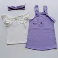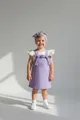 Vestido lilás para menina com alças largas e laços na frente. Possui delicado bordado de ramos de lavanda e tecido texturizado, macio e confortável para o dia a dia. Ideal para festas, festinhas ou passeios, mantendo estilo e conforto. Acompanha faixa de cabeça combinando para um look completo e charmosa apresentação. Costuras reforçadas; fácil de lavar.
