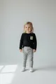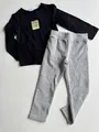 Conjunto infantil moderno e prático: blusa preta de mangas longas com detalhe discreto no peito e legging cinza. Tecido macio, toque suave e elastano para movimento livre. Costuras reforçadas garantem durabilidade nas brincadeiras diárias. Ideal para passeios, escola ou casa, combina com tênis neutro ou colorido para um visual comfy e estiloso.